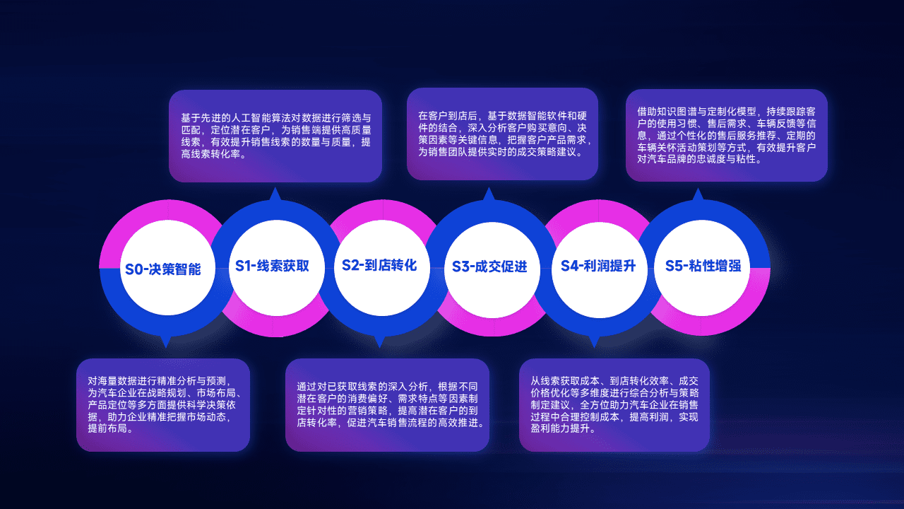 通过拓宽潜在客户来源、、优化线索分配并提高到店转化率,,以增强销售效率。。同时,,,利用线索数据不断优化分析模型,,有效提升转化率,,,扩大营销影响力。。。。